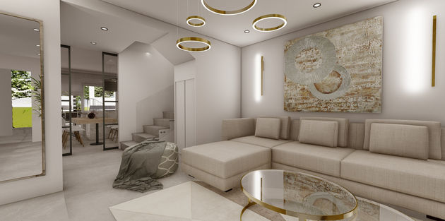Full renovation project. On the first floor, we designed a bioethanol fireplace in the living room with spaces on the sides. We increased the surface of the kitchen generating a large space with a large island and we enlarged the exit to the terrace. The toilet on the first floor was renovated along the lines of the bathrooms on the upper floor. On the second floor, the two existing bathrooms were renovated too. On the second floor, we designed a suite with access to the upper terrace. The terraces on the first floor are extended to generate a gazebo area with a pergola and on the main terrace, a chillout area with a bar was designed.